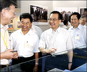 Other senior leaders, including Wen Jiabao, Zeng Qinghong, Huang Ju, Wu Guanzheng, and Li Changchun, also visited the exhibition, being held at the Military Museum of the Chinese People's Revolution in Beijing.