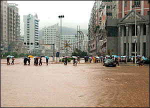 Officials with the provincial flood control office reported that downtown Dazhou -- the area that has suffered the most serious damage so far -- has been isolated by flooding, which caused cave-ins on urban roads and destroyed highways leading into the city.