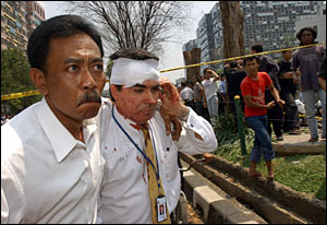 Megawati asked people to keep calm and cautious following the explosion. "I am very sad and concerned," the president told reporters after visiting the scene of the explosion and the victims in the MMC hospital near the location.