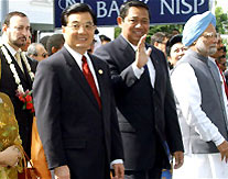 On Saturday, Hu held separate meetings with UN chief Kofi Annan, Japanese Prime Minister Junichiro Koizumi, Indian Prime Minister Manmohan Singh and Tajikistani President Emomali Rahmonov.