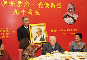 More than 180 luminaries from around the world gathered to celebrate his 90th birthday. They included Gu Xiulian, vice chairwoman of the Standing Committee of the National People's Congress, Hao Jianxiu, vice chairwoman of the CPPCC National Committee, and Zhao Qizheng, minister of the State Council Information Office.