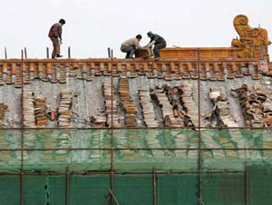 The most distinguished palace carpenter Zhao Chongmao has passed away, and painters Wang Zhongjie and Bu Xuelin are already in their 70s. They have been invited to help with the repair project, but more as consultants. The actual work is being done by migrant workers who have received only basic training.