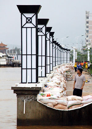 In Guangxi, floods have damaged 91 reservoirs and 53.4 kilometers of dikes. In Wuzhou City, river water levels on the Xijiang rose to 26.75 meters when the flood crest came at 12:00 AM on Thursday, 9.45 meters above the warning line.