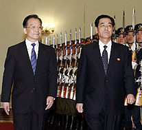 China advocates a nuclear-weapons-free peninsula and the maintenance of peace and stability. To that end, "China is committed to resolving the issue through the six-party talks," Wen told Pak.