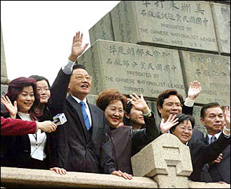 Chiang Pin-Kun and his delegation had arrived in Guangzhou the previous afternoon, marking the KMT's first formal visit to the mainland since the group fled to Taiwan in 1949.