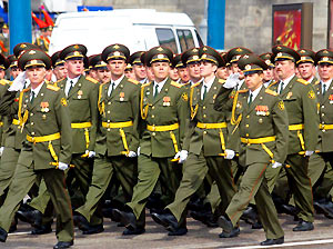 A host of world leaders, including President Hu Jintao, US President George W. Bush, French President Jacques Chirac, German Chancellor Gerhard Schroeder and Japanese Prime Minister Junichiro Koizumi, joined Putin and war veterans near the Lenin Mausoleum for the parade that also featured a flyover by MiG and Sukhoi fighter jets.