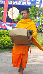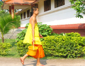 "To be a monk student, you cannot smoke cigarettes, drink alcohol, stay out late or play billiards outside," said the 17-year-old sweeping the Buddhist temple courtyard planted with talipot palms, bodhis and other tropical and subtropical trees, "Otherwise you will be fined 100 yuan (US$12)."