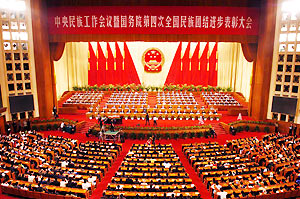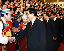 Hu called on the whole nation to have a correct understanding of the ethnic issue under the new situation, accomplish every job concerning the work of ethnic affairs, and help ethnic minorities and ethnic areas to step up economic and social progress to promote common prosperity and development of the whole nation.