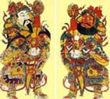 The earlier Door Gods were depicted with fearful facial features and expressions. Later, people used the images of famous former generals in their images of Door Gods. There was once a joke saying that China's famous generals had all been reduced to doorkeepers for ordinary people.