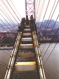 The steel frame of arch ribs, which will extend out 28 pairs of hangers linking the bridge deck, plays a role in containing the bridge floor. The arch ribs are composed of 27 sections, 24 of which have been completed. The last three sections waiting to be joined up are the most difficult and need precise calculation. So it will take them at least one month to complete...