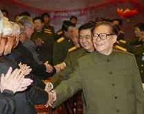 Jiang extended season's greetings while attending the theatrical performance celebrating the upcoming Spring Festival, which was organized by the CMC especially for the veterans in armed units stationed in Beijing. Hu Jintao, general secretary of the Central Committee of the Communist Party of China (CPC), was also present.