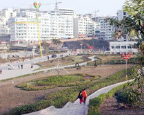 The new township on the southern bank has a prosperous appearance with neatly arranged buildings, broad and tidy streets and thriving greenbelts.