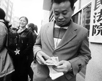 "I finally retrieved my payment, which was four months in arrears," said Tian Shirong in a trembling voice while holding his defaulted payment - 2,000 yuan (US$241).