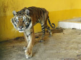 Tang Mingli, 22, was on a 4-meter-high (13-foot-high) roof shooing the tigers out of a rest area with a metal rod when one jumped up and mauled his shoulder, knocking him into the pen, the report said.
