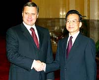 Wen also lauded the relationship. "I again wish to push forward an exchange of views on bilateral ties, especially in economics and trade," he told Kasyanov. (China Daily September 24, 2003)