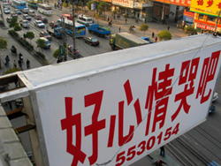 The photo taken on November 3, 2004 shows the signboard of a "cry bar" in Hefei, capital of east China's Anhui Province. People, who want to give full vent to their grievances, sorrow and frustration, can cry in the bar by paying 50 RMB yuan (US$6) per hour.