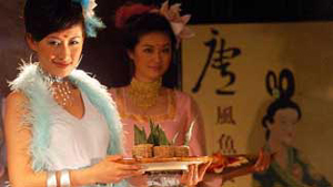 An activity called "Tang Style Fish Feast: Exhibition of Chinese Style Sashimi Culture" was held recently on a yacht cruising the Pearl River, southern China.