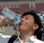 A woman peddling in Huixin Dongjie in Chaoyang District, shifted her emphasis from morning snacks to soft drinks. "Famous brands such as Master Kong green or red tea are selling very well, a 30 percent increase compared with an average day despite a price rise," said the woman, beaming with joy.