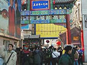 Wangfujing Street in central Beijing is a bustling commercial area. In early 2000, it was made a pedestrian street, the only one of its kind in the capital. Soon after food stalls were opened in the southwestern part of the street. All the food stalls there are built according to the architectural style of old Beijing.