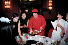 Though busy with his work, he did not forget it was a traditional Chinese festival for family reunions. He had already arranged a family dinner at 6:30 with his wife, Qi Yan, whom he met in fell in love with when he first came to Beijing in 1993, and her family. He told me that he and Yan used to spend the festival nights at Houhai, a lake area in downtown Beijing, rowing boats and enjoying the moonlit tranquility on the lake. But they would not go there this year, because there were so many restaurants and bars there now, taking away some of the tranquility of the place.
