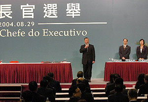 Ho garnered 81.9 percent of the votes cast by a 199-member Selection Committee in May 1999 to become the first chief executive ever elected by Macao people.