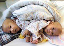 Ke Zuo and Ke You, who were born on August 10 to a farmer family in Jiangxi Province's Wuning County, shared a common liver, but all of their other organs were independent, doctors said.