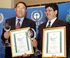 Xie Zhenhua, Chinese minister of the State Environmental Protection Administration, was awarded the 2003 Sasakawa Environment Prize by United Nations Secretary-General Kofi Annan at a ceremony in New York Wednesday.