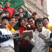 Along with over 200 college volunteers, the movie mogul climbed up the Badaling Great Wall in northwest Beijing to kick off another round of the Green Great Wall project.