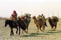 Several Kazak herdsmen are on the route to higher places in Altay region in Xinjiang Uygur Autonomous Region Monday, April 16, 2001.