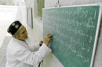 Talipu Aishan, a 102-year-old resident of Lixian County in the Xinjiang Uygur Autonomous Region, continues his work disseminating agricultural news and government rural policies among local farmers and herdsmen on a small blackboard he made himself.
