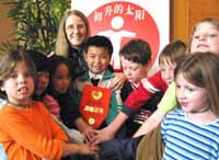 Chinese boy Kang Le(middle) poses for a picture with foreign primary students from the United States who donated their pocket money for Kang's schooling in Shanghai March 25, 2002. It is a part of the 15th charity activity launched by 122 foreign friends and organizations from 16 countries and regions to aid 231 excellent Chinese students in Shanghai who are from poor families.