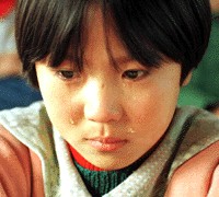 A ten-year-old school girl named Chen Xin, who has returned to school with her 43 classmates supported by all walks of society, bursts into tears as she receives clothes and stationeries sent hundreds of km away, in Funan, Anhui Province December 10, 2000.
