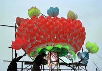 A giant lotus-like lantern with a diameter of five meters was installed in the Fuzi Temple Square of Nanjing, east China’s Jiangsu Province, on January 10 to greet the First Qinhuai Lantern Festival of the city.