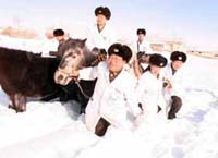 Doctors of the NO.16 Hospital of the People's Liberation Army (PLA) make their way through the heavy snow Sunday in blizzard-stricken Altay area in northern parts of the Xinjiang Uygur Autonomous Region, February 11, 2001.