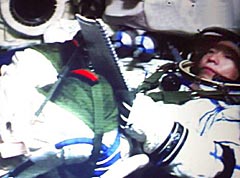The image signal, sent from the Shenzhou V spacecraft, shows that Yang was lying on his back in the re-entry module of the Shenzhou V spacecraft, with calm expression and even breath. His resting time will last three hours.