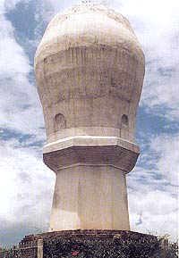 Standing on the Wenbi Peak half a kilometre west of the county town of Dayao in Yunnan Province, the White Pagoda with inscriptions and incantations carved all over its walls is unique. According to historical records of Yunnan Province, the pagoda was first built in the Tang Dynasty and underwent repairs in 1872 during the Qing Dynasty and again in 1975.