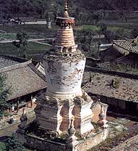 The dagoba is to the left of Xiantong Temple in Taihuai Town, Wutai County. It was built in 1434 during the Ming Dynasty to preserve the relics of an eminent Indian monk by the name of Baolisha.