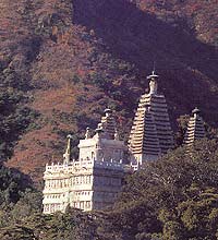 The main vajrasana was made of white marble covered by carved statues of Buddha, bodhisattvas, heavenly kings, guardians, dragons, phoenixes, lions, elephants and other animals and plants. It is a giant work of stone carving.