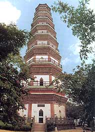 Located in Sanyuan Pagoda Park southeast of the county town of Haikang, the pagoda was built in 1615 during the Ming Dynasty. It is said that during its construction three round (sanyuan in Chinese) snake eggs were found under its foundation, hence its name Sanyuan Pagoda. It is also called Talents' Pagoda because it was built for the purpose of encouraging local talents.
