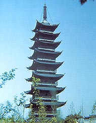 The pagoda was built sometime between 1068 and 1077 during the Northern Song Dynasty. Many changes were made during repairs in the Ming and Qing dynasties, but the main structure and style remained Northern Song Dynasty. About 60 percent of the wooden brackets, the lintel above the arched gate and the rafters under the eaves are the original components. In 1974 the staircase on the ground floor was rebuilt and the pagoda was restored to the style of the Northern Song Dynasty, based on surveys made by the cultural relics department of Shanghai.