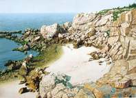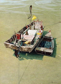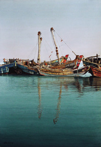 Yu recognizes the true meaning of life in his works and invests both his soul and love in perceiving and comprehending the process. He perceives the world quietly and softly -- a building, a tree, a wrecked ship or a weathered rock. These images tell of old days of sunshine and darkness. They are like old men, with years of life's sorrows and joy behind their calmness and quietude. These images build up the basis of Yu's works and bring him continuing inspiration.