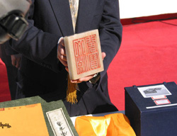 The seven copies, each containing 1,184 volumes, bear the stamps of two real jade seals once used by Emperor Qianlong (1736-1795), who himself organized the composition of the massive encyclopedia, officials from the Palace Museum (The Forbidden City) said on Monday.