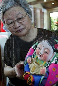 Her eyes glittering with excitement, the 64-year-old held the two lovely, plump figurines -- a boy and a girl -- in her arms as if holding her own children. The handmade figurines are considered symbols of happiness and auspiciousness.