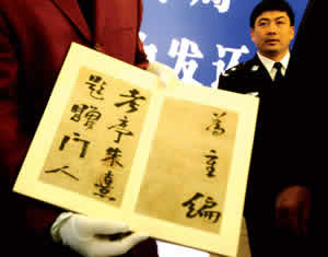 A stolen calligraphy album by ancient Chinese philosopher Zhu Xi has finally been recovered and three people arrested on suspicion of theft, Beijing police announced on Wednesday.