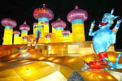 Dozens of traditional fairytales like Sleeping Beauty and stories like A Bug's Life and Finding Nemo, are showcased by the lantern characters and told in posters in Chinese.
