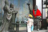 But the original clay sculpture of Zhang Fei in the temple's main hall had become fragile with the passing of time and could not be removed safely. It was abandoned and replaced at the new site by a newly cast bronze sculpture that is 3 meters high and weighs 2 tons.