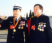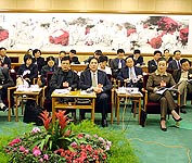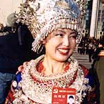 Bo Xilai, 16th Party Congress delegate and governor of Liaoning Province, shaking hands with fellow-delegates.