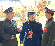 Delegates from the Army discussing Jiang's report to CPC 16th Congress.