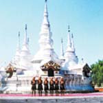 Tian'anmen Square is the grandest site to view the festive mood. More than 500,000 flower pots with 100 different species of flower are placed throughout the square. A 17.5-metre-high satellite tower, modelled after Shenzhou 5 and weighing 40 tons, also stands at the east part of the square. Fountains, surrounded by flowers, is centred around the square.