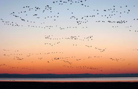 A flock of white swans are frolicking at the Dalinor Lake, Inner Mongolia on Oct 6th. Tens of thousands of white swans have flown from Siberia to the Lake recently. Dalinor is a National Natural Reserve comprising grassland, lakes, wetland, sand and woods. It is home to 160 kinds of rare birds.
